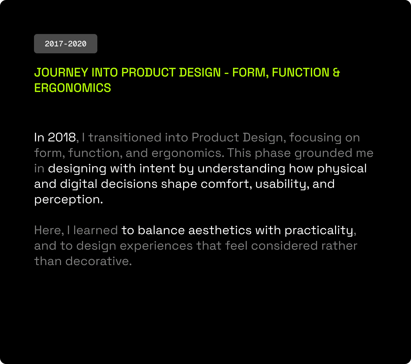 With roots in product design, I bring clarity to hierarchy, form, and interaction. Craft, for me, is not decoration, it’s how usability, accessibility, and trust are reinforced through thoughtful decisions.