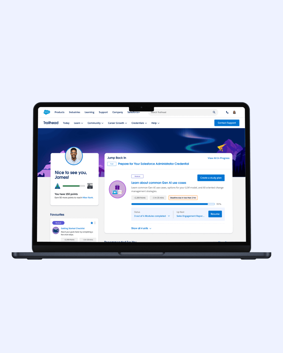 As Trailhead expanded to support more roles, industries, and AI-driven content, users struggled with discoverability, personalization, and progress clarity across multiple learning tracks. Salesforce needed a scalable, AI-ready learning experience that could guide diverse users without increasing cognitive load.